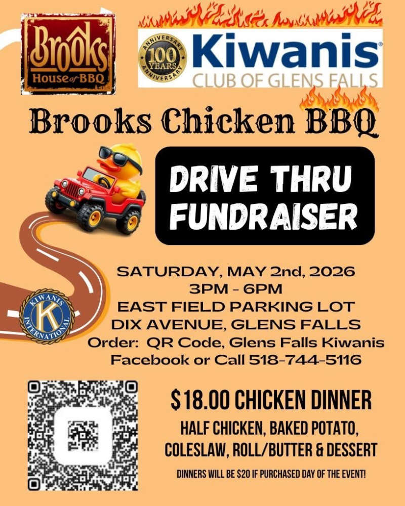 The Kiwanas Club of Glens Falls invites you to a delicious Chicken BBQ.