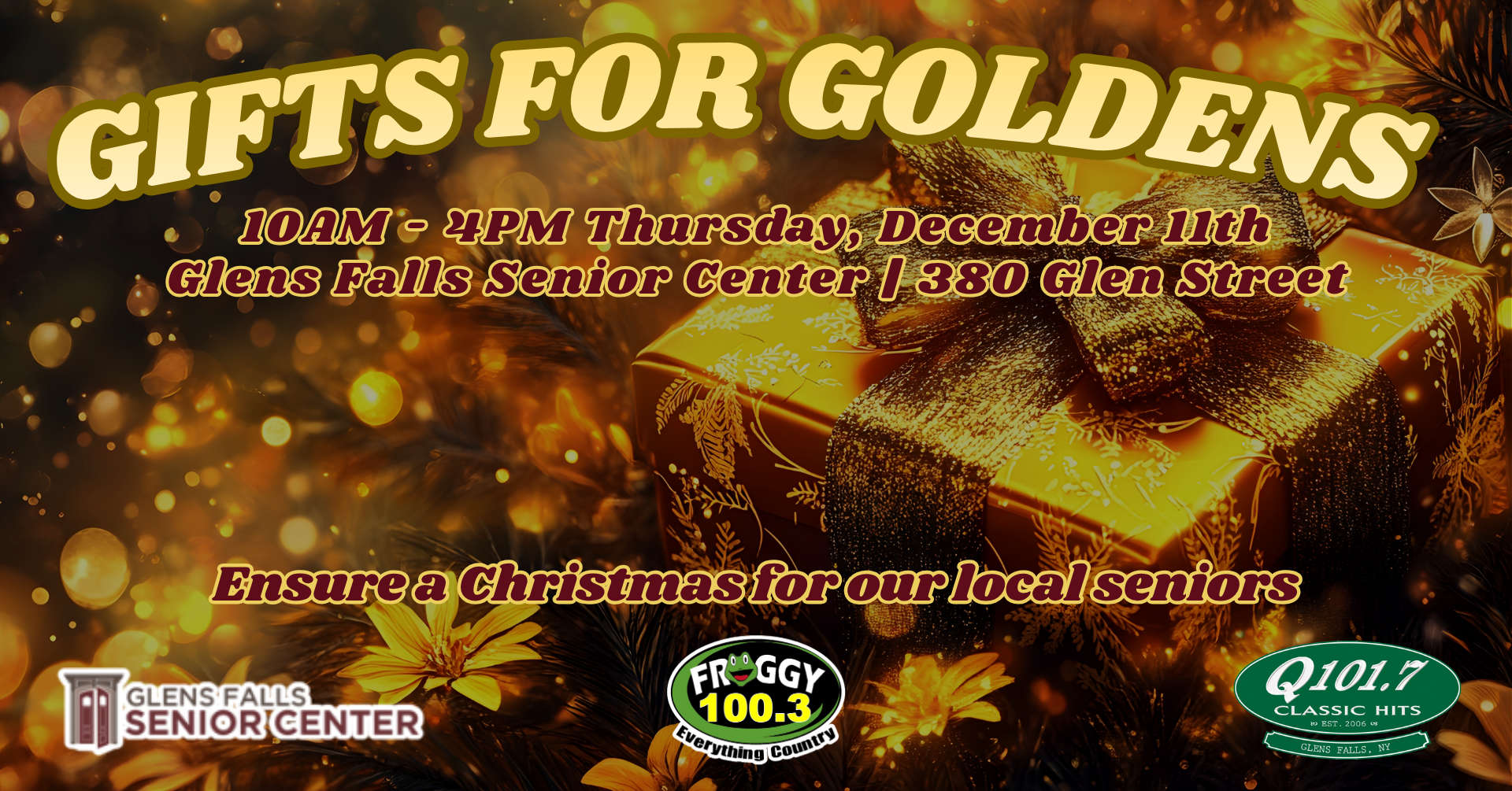 Adirondack Broadcasting and the Glens Falls Senior Center are teaming up once again to ensure local seniors here in the Glens Falls region get the Christmas that they truly deserve with the 15th Annual Gifts for Goldens.